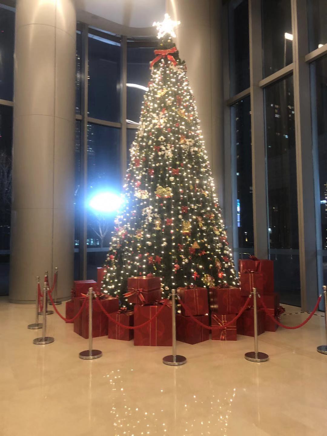 可想而知,來往于這座樓宇的應(yīng)該都是“上班族”、“白領(lǐng)人群”,每當(dāng)夜幕降臨,下班的時鐘敲響,路過大廳,看到閃閃發(fā)光的圣誕樹,圣誕氣息撲面而來,心情也頓時變得美麗。