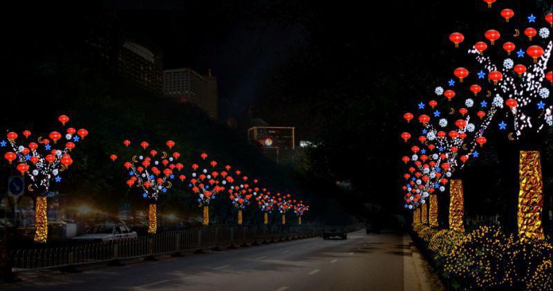 道路亮化:主要是道路兩旁的樹木亮化,可以使用中國結(jié)、紅燈籠等裝飾掛燈,搭配串燈打造春節(jié)主題的樹木亮化,讓在路上奔波的人們感受到濃郁的節(jié)日氛圍,感受傳統(tǒng)文化魅力。